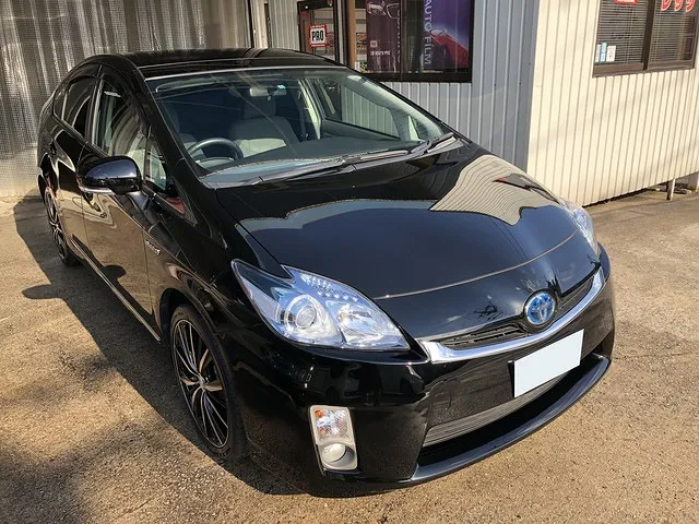 倉敷市西富井のF様。部分塗装をしたタイミングで全体を磨きなおしてPROMAX-EXEを施工しました。ヘッドライトの輝きを保護するためにプロテクションフィルムも施工して頂きました。