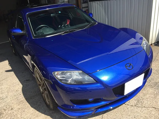 倉敷市船穂のH様。1年前にSSTを施工されて、初めてのメンテナンスです。屋外駐車で平面部分が少し傷んでいたのを整えさせて頂きました。新車の輝きが復活です。