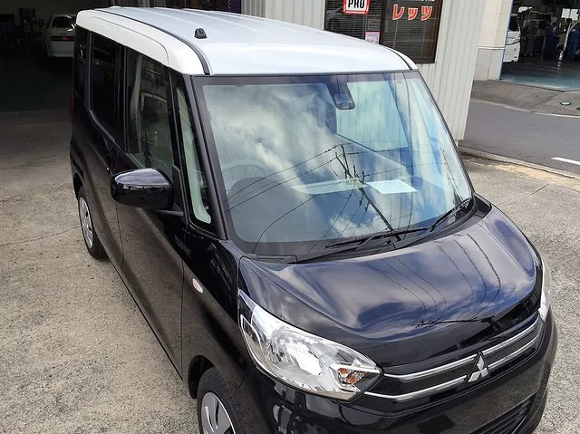 西日本三菱自動車販売様よりのご依頼でブラック色のeKスペースにパールホワイトでツートーンカラーにしました。