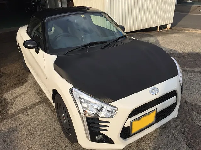 津山市から遠路お越し下さった Y様。購入前から考えられていたというボンネットへのカーボンブラックのラッピング。満足頂き、本当にありがとうございました。お疲れさまでした!
